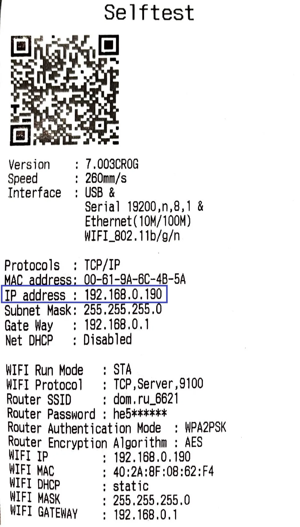 Проверьте на чеке, что IP-адрес принтера задан корректно и совпадает с тем, который вводили в утилите: