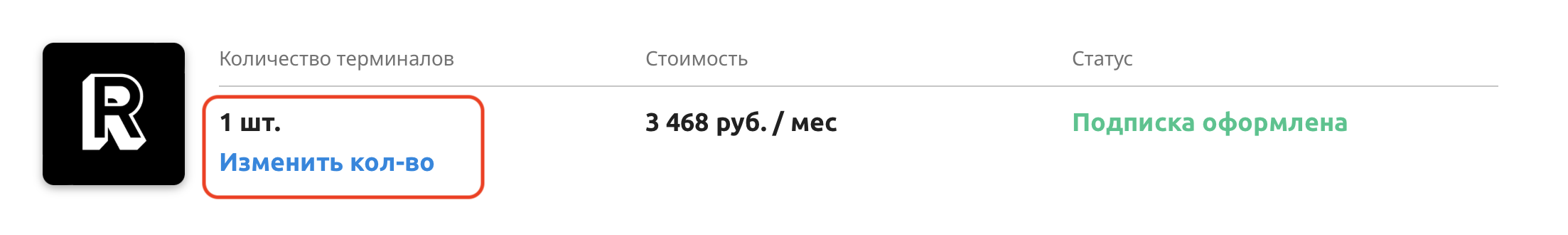 Обратите внимание, что каждый терминал оплачивается отдельно по полному тарифу.