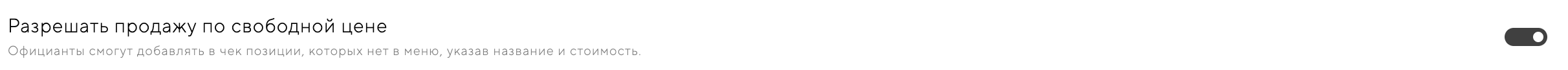 Включите возможность продажи по свободной цене и оформите оплату депозита как отдельный чек, добавив в комментарий имя гостя или его номер телефона. Настроить продажу по свободной цене можно по ссылке. Включите тумблер «Разрешать продажу по свободной цене» и сохраните изменения: