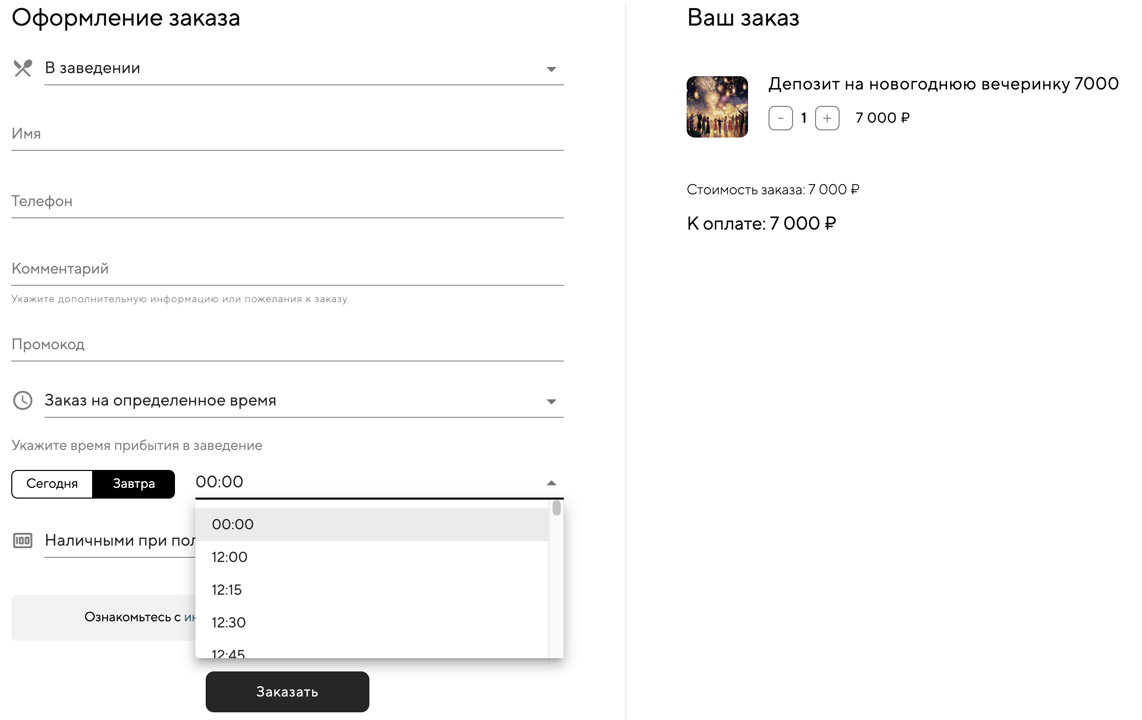 Иногда гости вносят депозит и заранее оформляют заказ — в таких случаях удобно использовать также предзаказ. Подробнее — по ссылке.