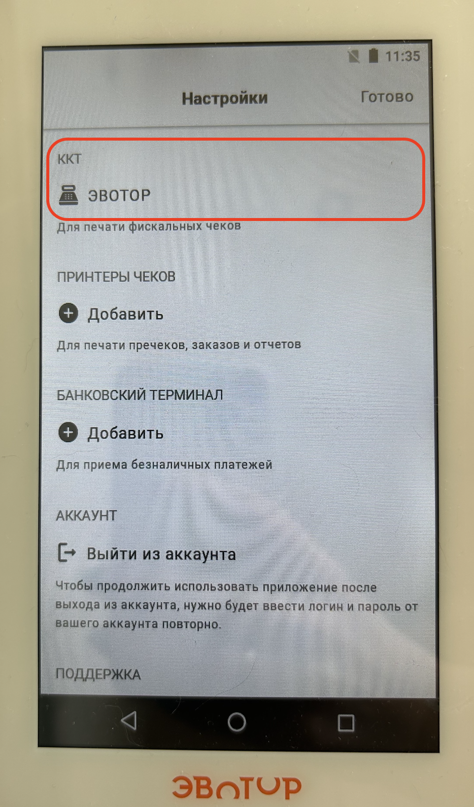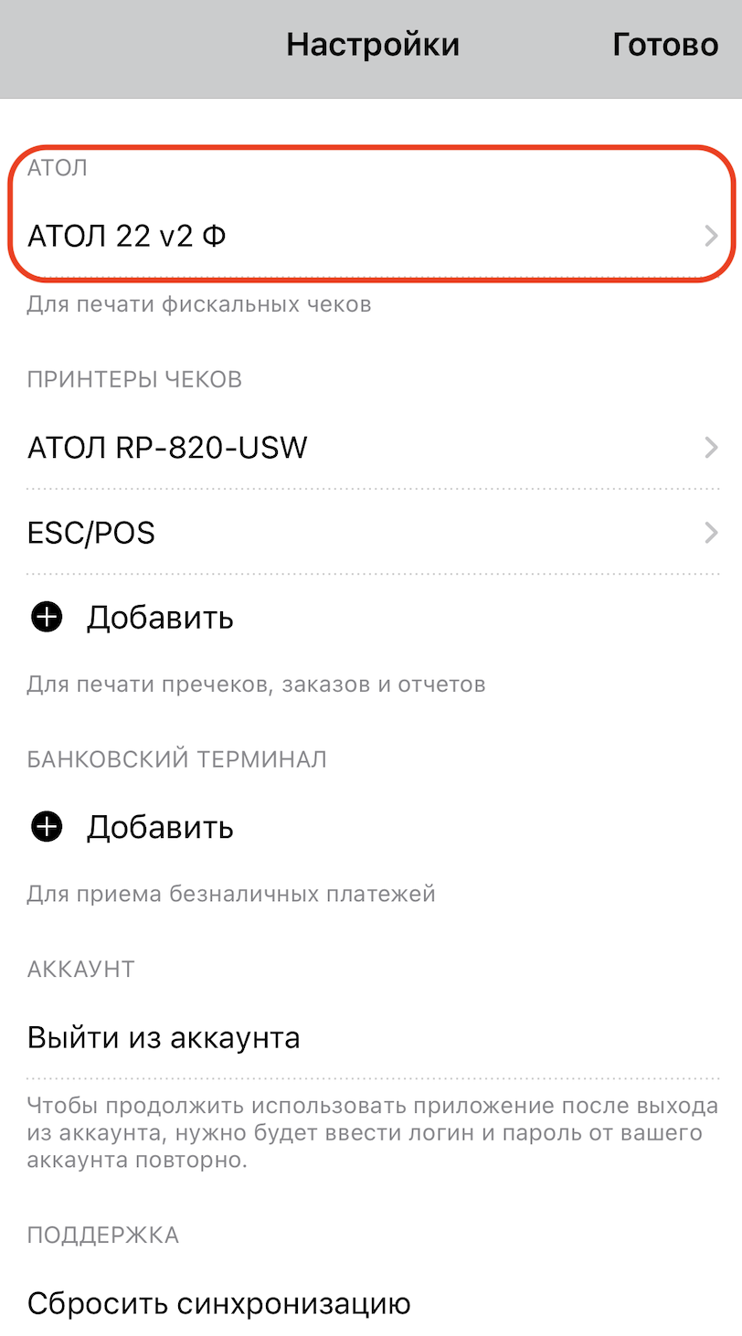 Зайти в настройки АТОЛ из приложения Restik POS.