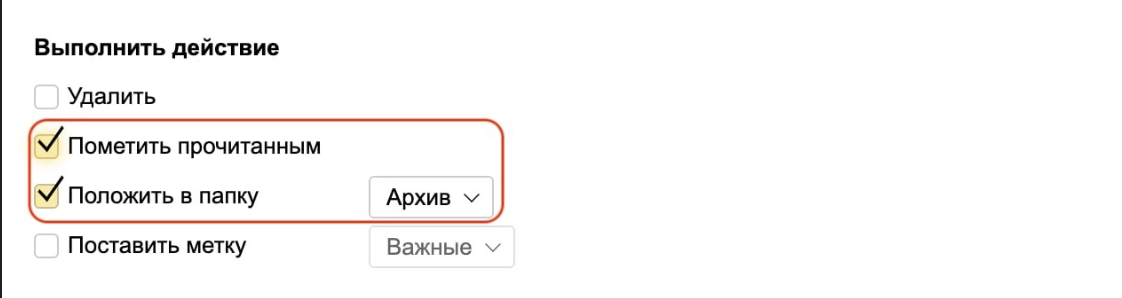 • Переместить в папку — выберите «Архив» или создайте новую, например, «Restik заказы»