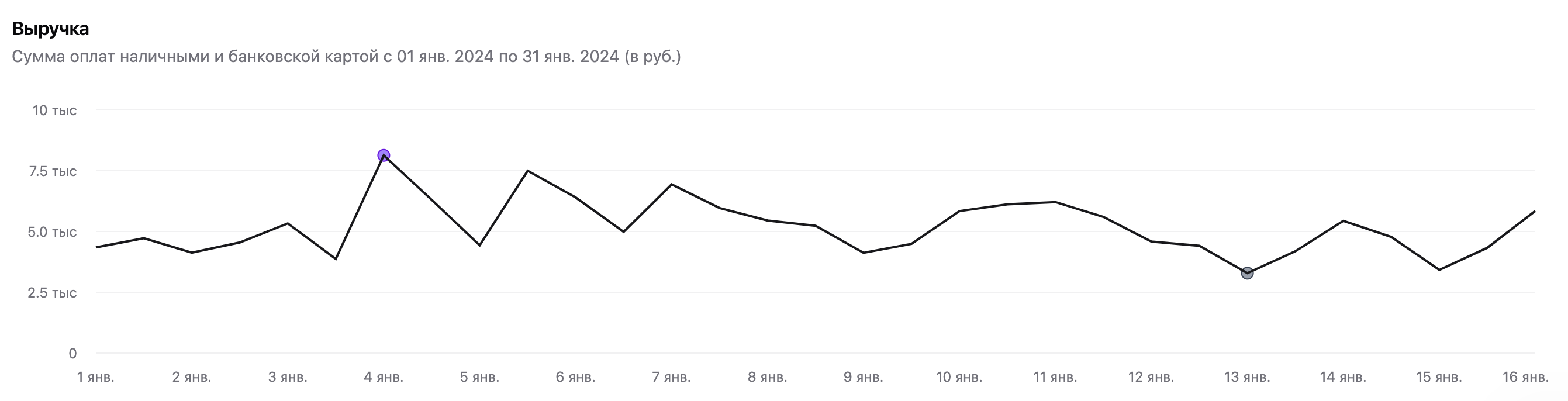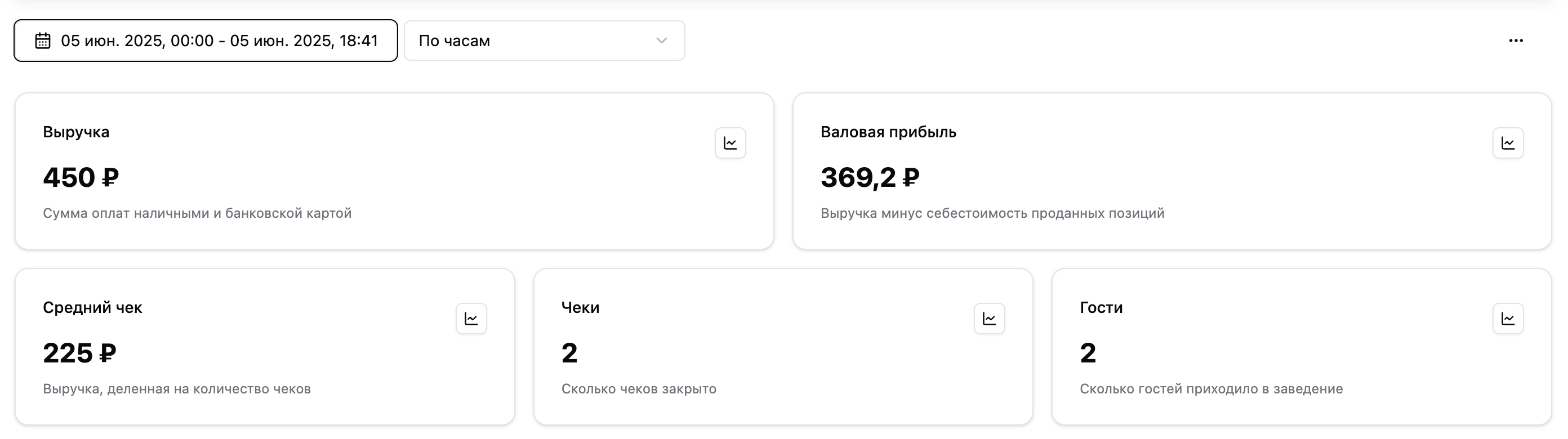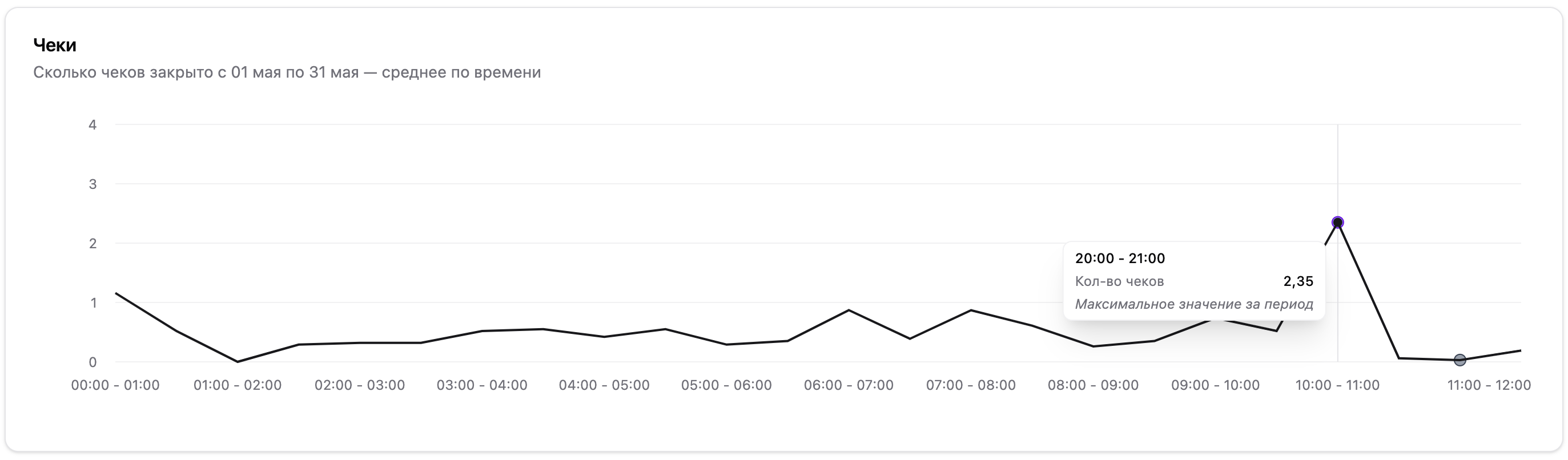 Фильтры позволяют быстро выбрать нужные данные для точного анализа и принятия решений: оценить динамику продаж и выявить часы пиковых продаж или средний чек. Возможности фильтрации зависят от выбранного периода.