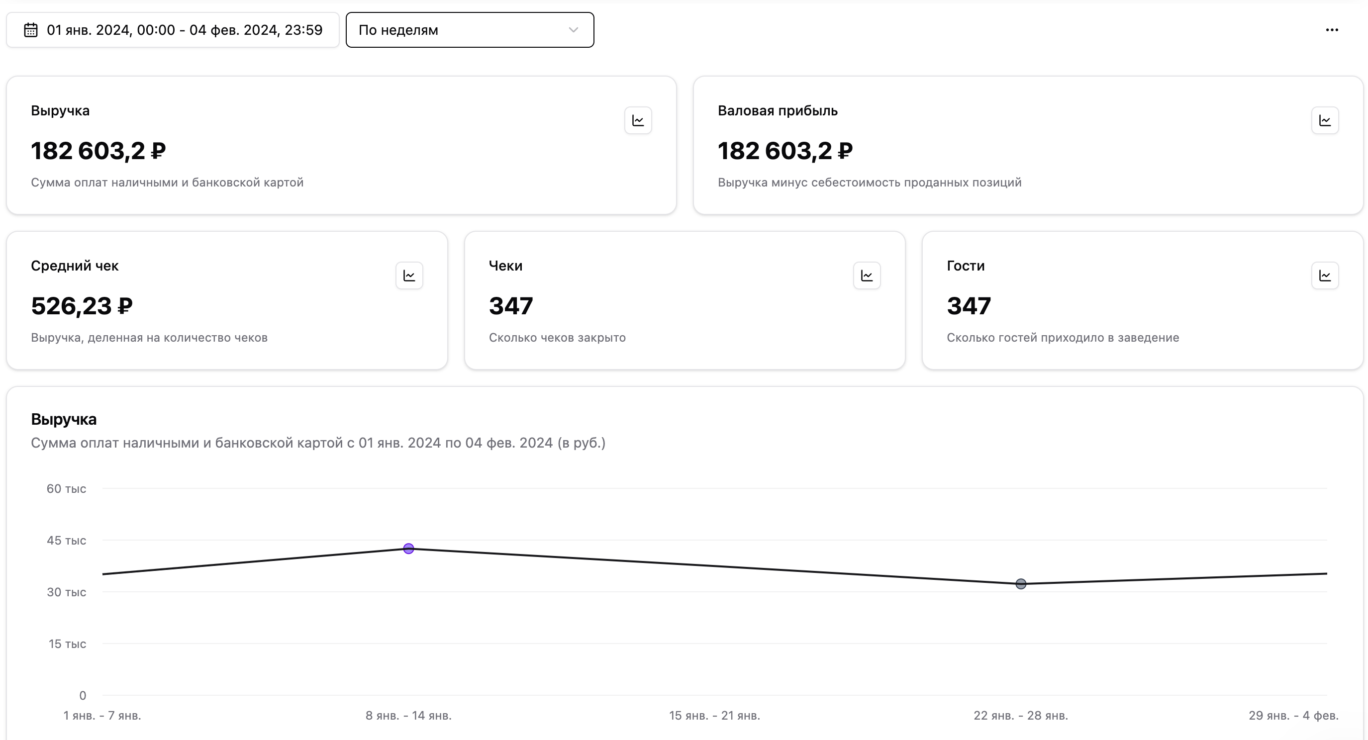 Следите за выручкой, чеками и оплатами по дням и часам, чтобы вовремя запускать акции и оптимизировать работу заведения