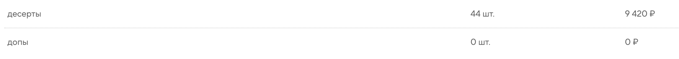 Менее популярные категории «десерты» и «допы»: