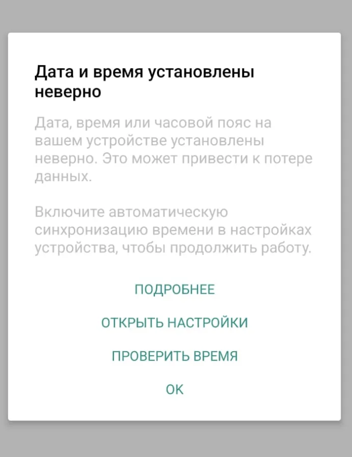 Ошибка «Дата и время установлены неверно»