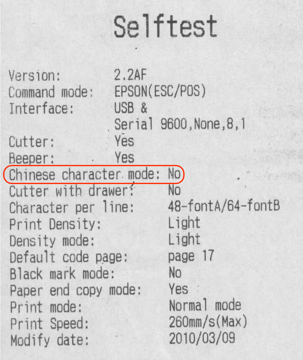 Обратите внимание на строку «Chinese character mode» в сервисном чеке — там должно быть указано «NO». Если указано другое значение, его необходимо исправить.