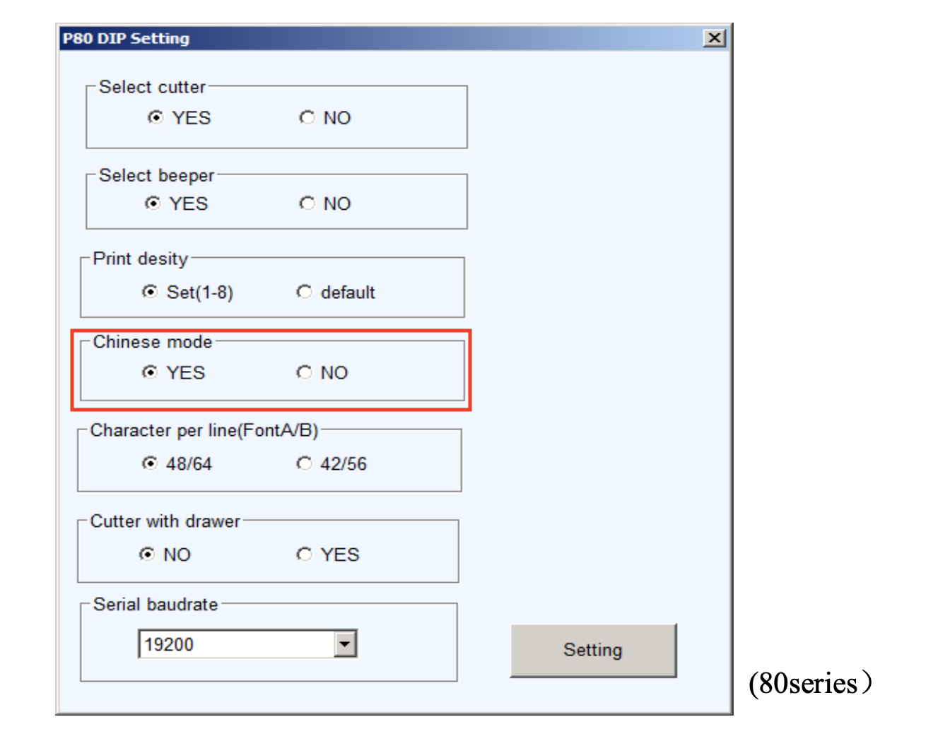 В открывшемся окне установите переключатель «Chinese mode» в положение «NO» затем нажмите «Setting».
