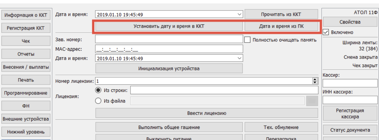6. Дата и время на кассе АТОЛ меняются сразу, без необходимости перезагрузки.