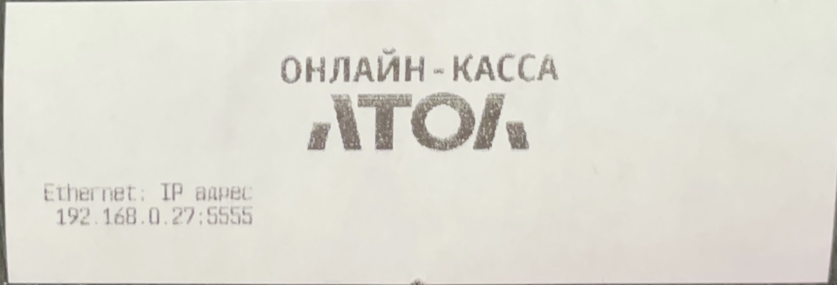 💡 На разных версиях онлайн-касс IP-адрес, который касса печатает при включении, может отображаться с портом или без него. При подключении к Restik в поле «IP-адрес» вводится только сам IP. Порт указывать не нужно — даже если касса его напечатала. Однако если на чеке порт отличается от 5555 — значит, что порт настроен неправильно, и его нужно перенастроить.