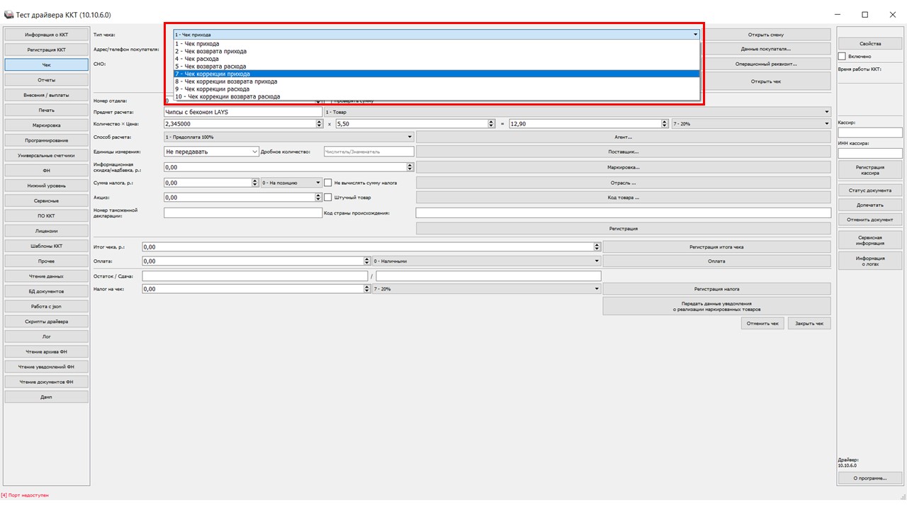 После установки запустите программу «Тест драйвера ККТ», которая появится на вашем компьютере.