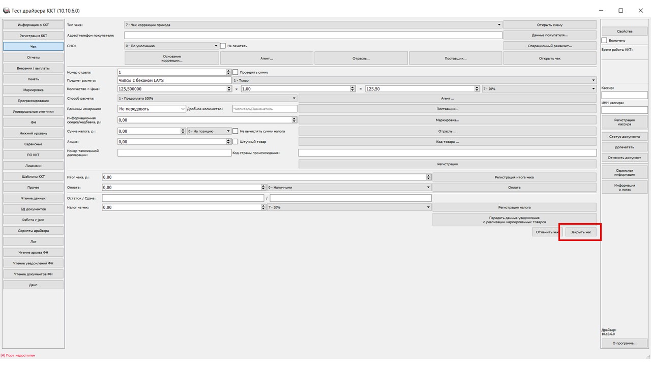 8. Закройте чек. ККТ распечатает чек коррекции и данные будут отправлены в налоговую.