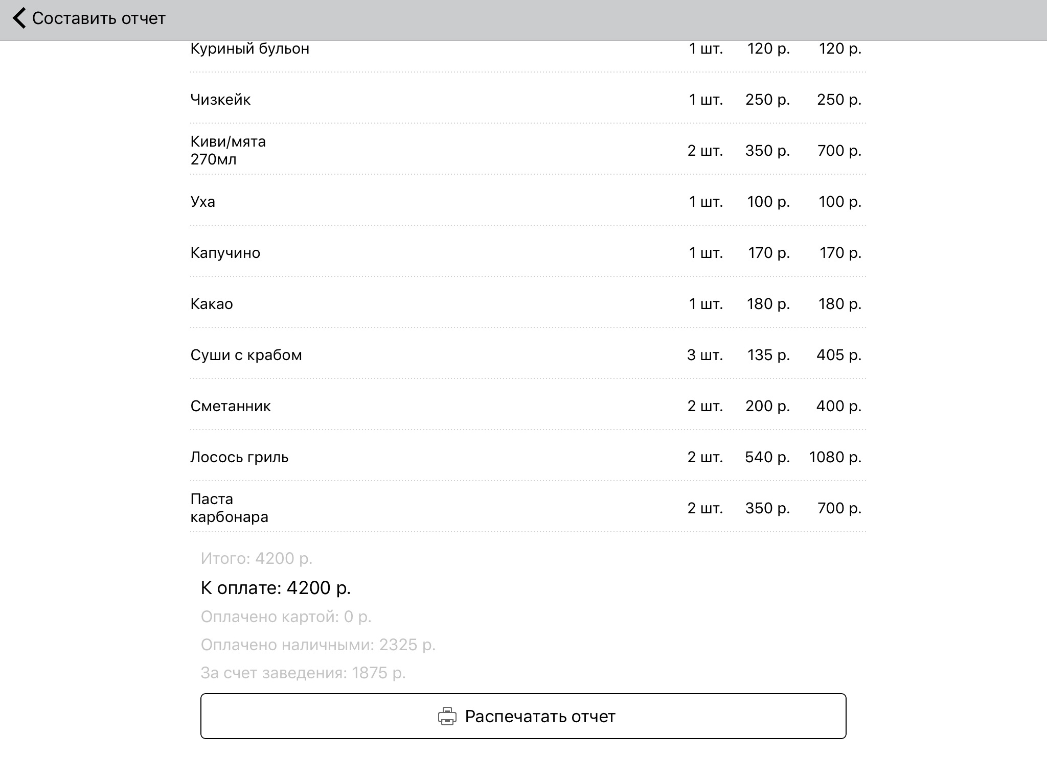 • Отчет по официантам.