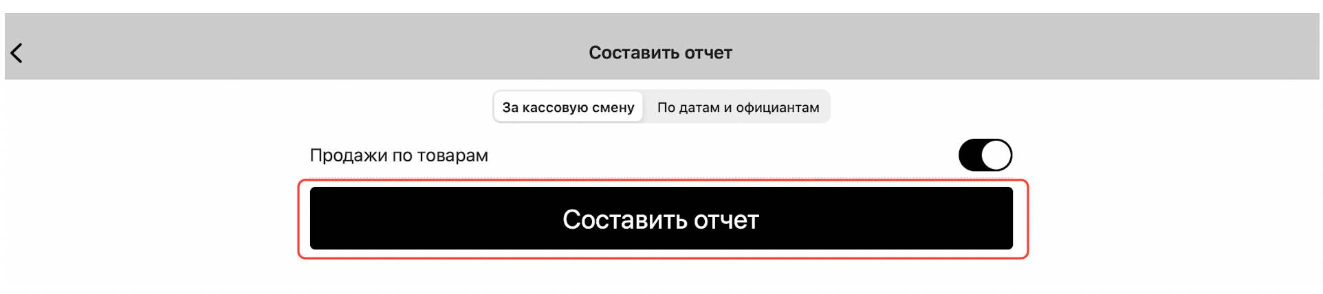 Выберите, нужно ли включать в отчет продажи по товарам (в противном случае в отчете будет указана только итоговая стоимость проданных товаров), и нажмите «Составить отчет»: