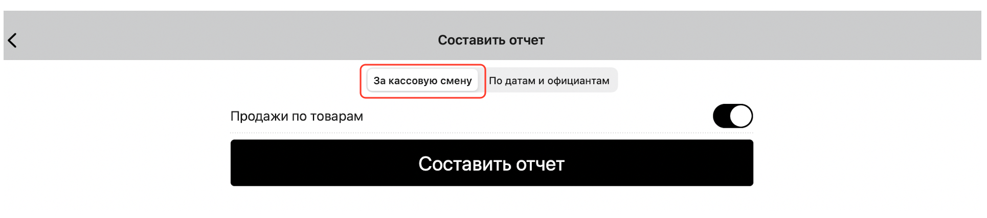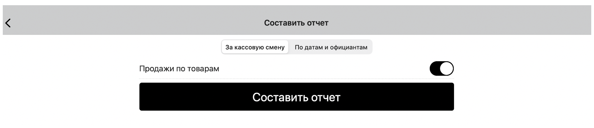 Выберите, нужно ли включать в отчет продажи по товарам (в противном случае в отчете будет указана только итоговая стоимость проданных товаров), и нажмите «Составить отчет»: