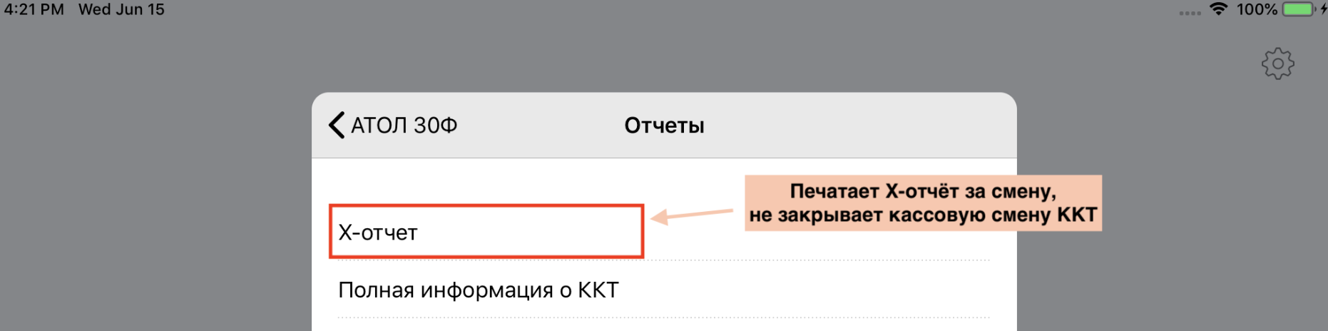 Распечатать X-отчет на онлайн-кассе