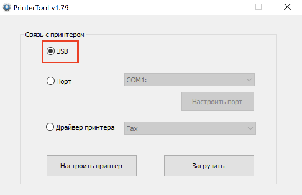 Выберите «Связь с принтером» — «USB»;