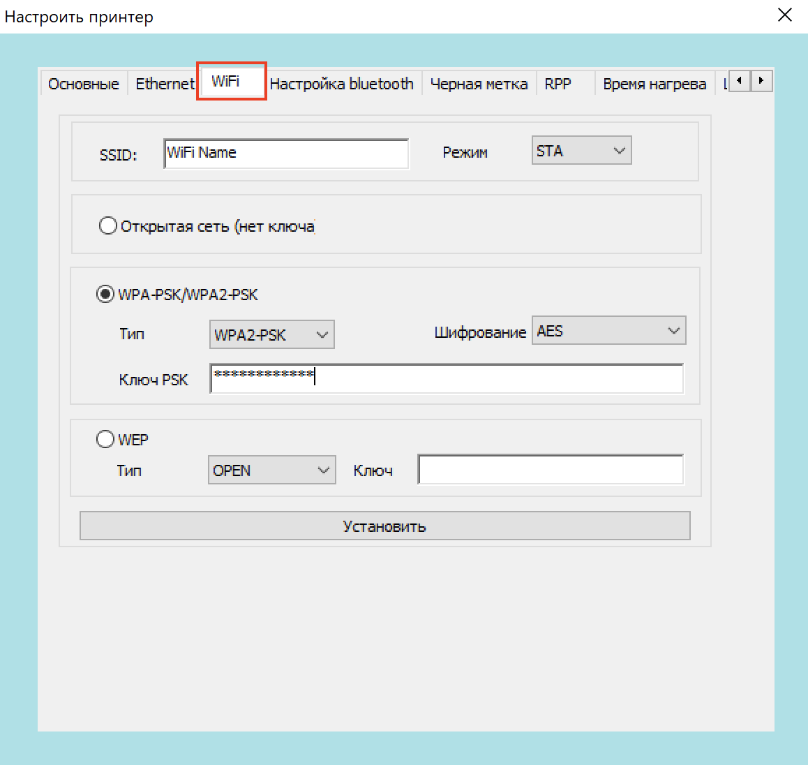 В поле «SSID» введите имя вашей сети WiFi;