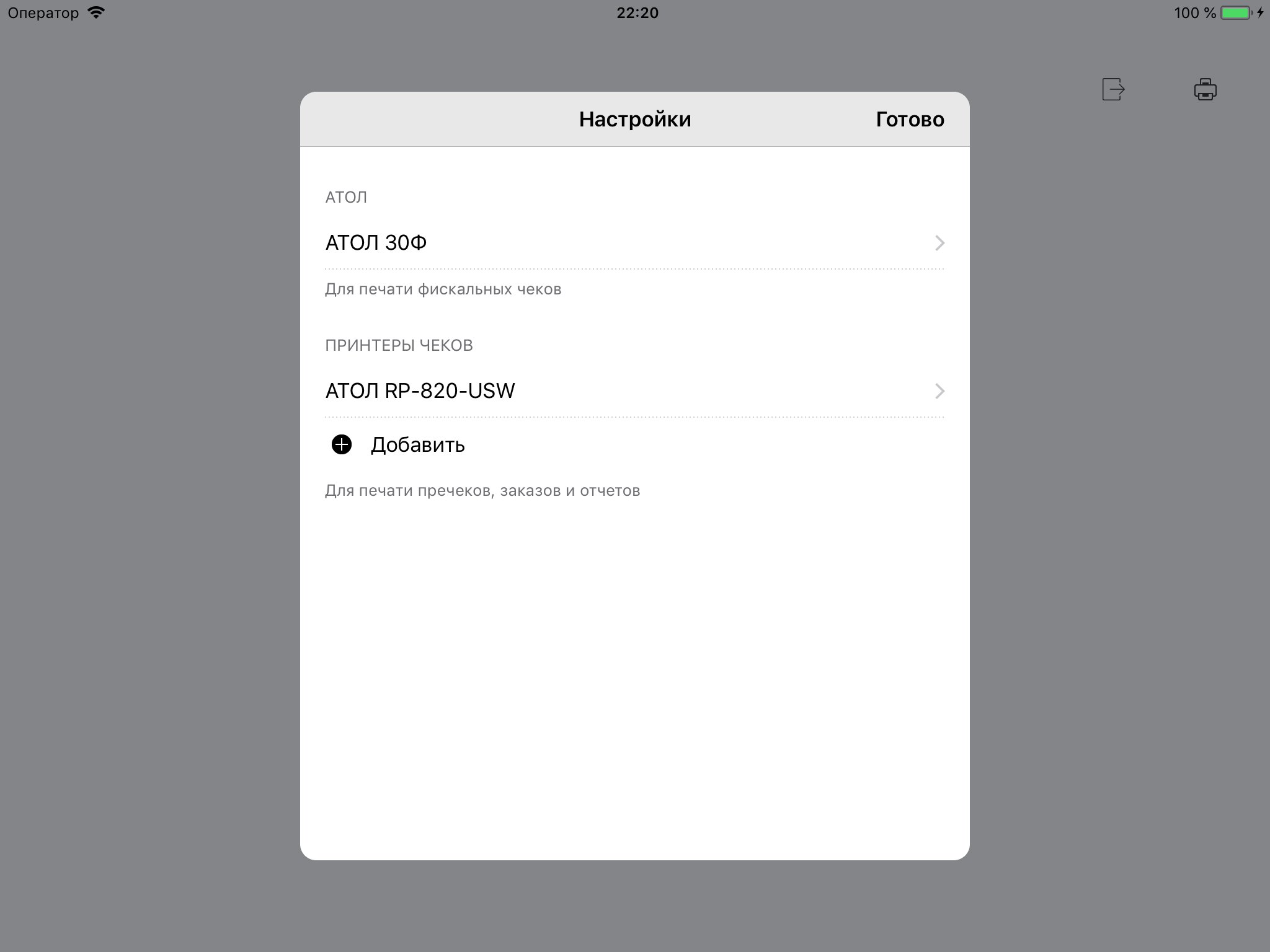 Чтобы настроить печать чеков, пречеков, отчетов и заказов в местах производства обратитесь к этой статье.