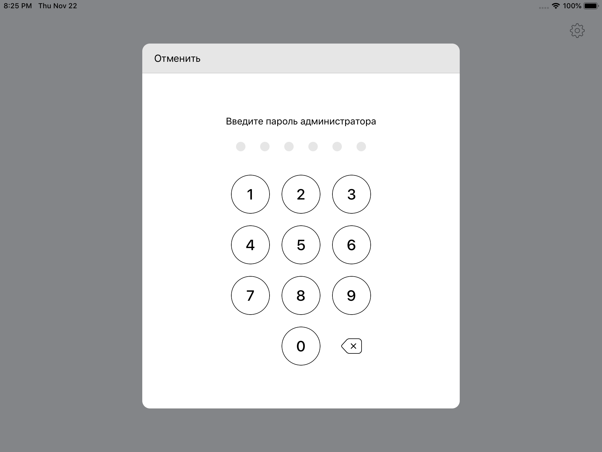 Теперь при попытке выполнить действие, для которого включен пароль администратора, официант увидит предложение ввести пароль. Обратите внимание на то, что сотрудник, который знает пароль, должен находиться в зале. Это может быть любое доверенное лицо, например администратор зала.