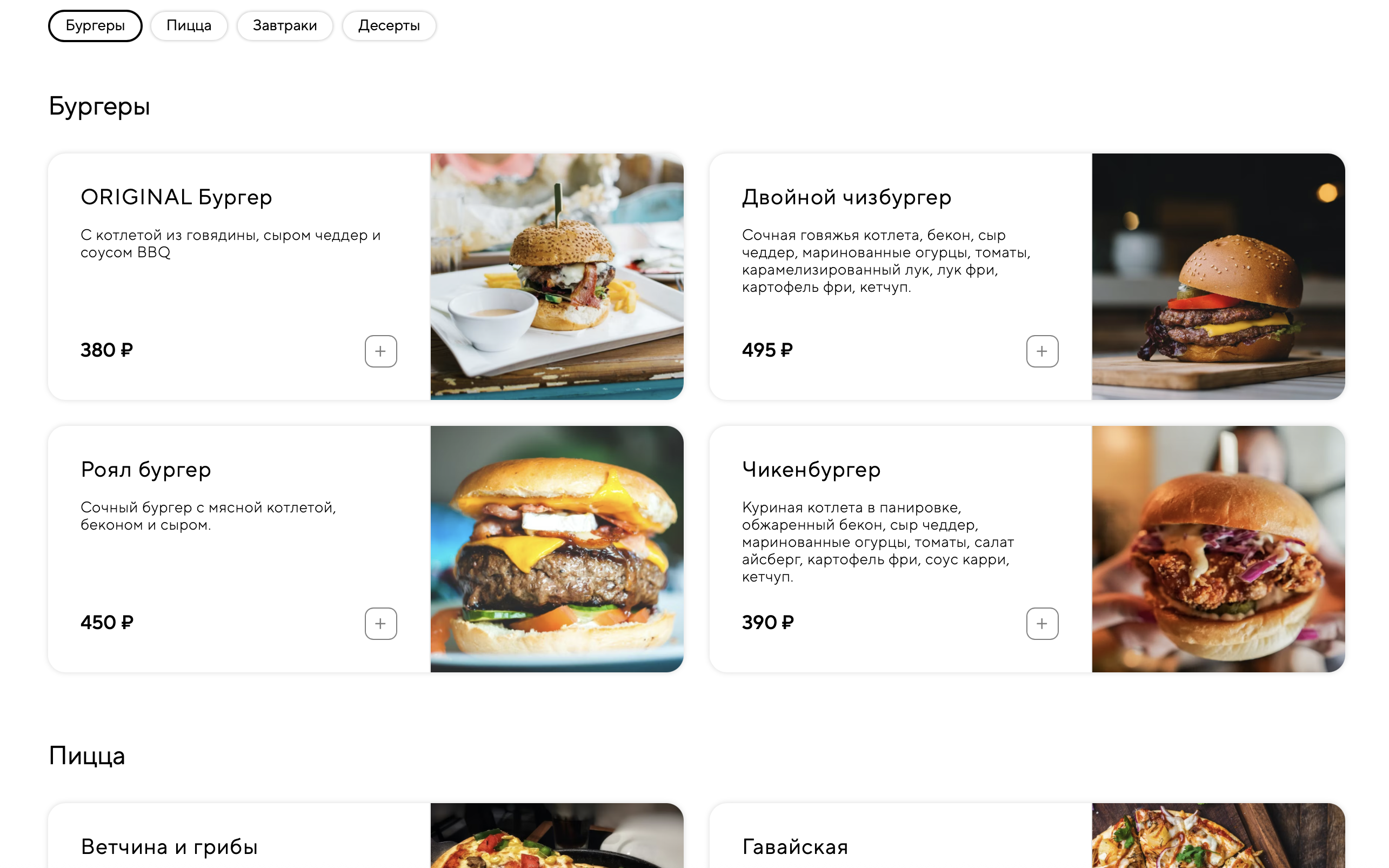 Как категории отображаются у гостя на сайте доставки