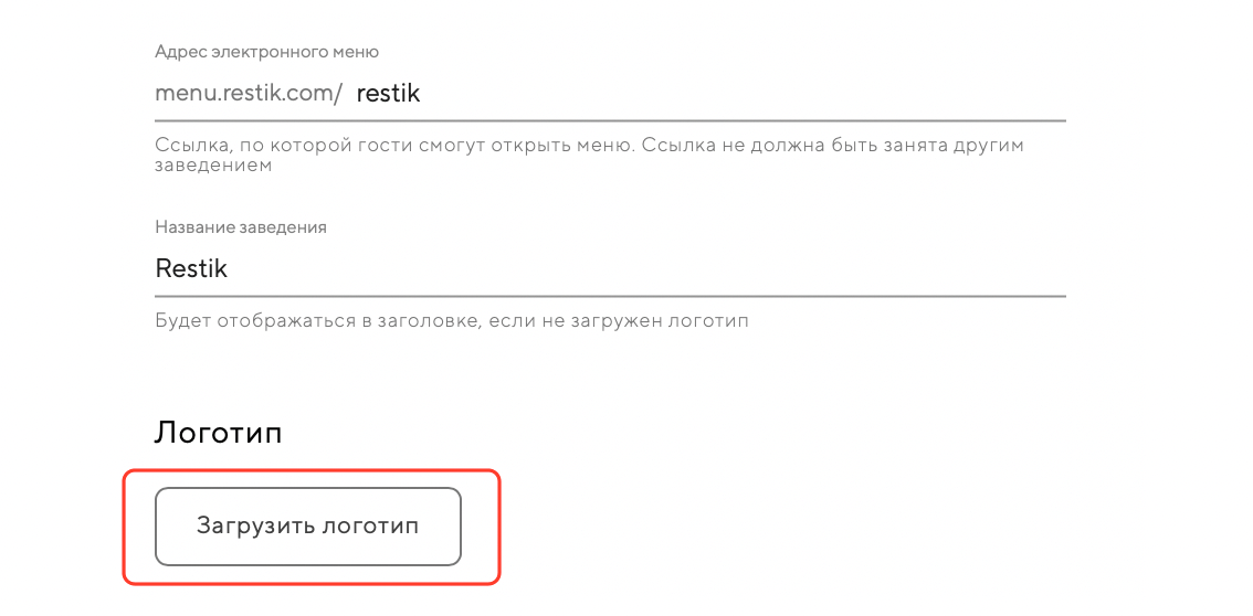 💡В адресе можно написать любую строчку без пробелов и других знаков, на латинице. Например, если вы напишите «demo», то ваше меню будет доступно по адресу https://menu.restik.com/demo