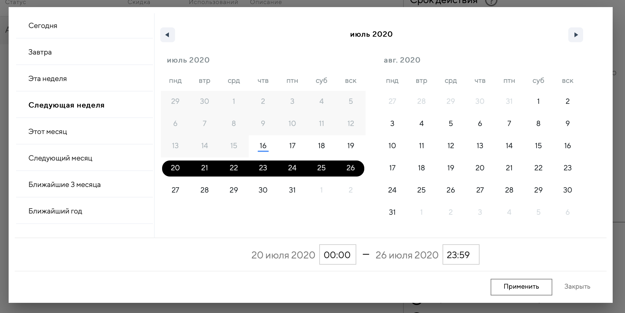 Срок действия промокода истёк или промокод запланирован.
