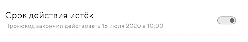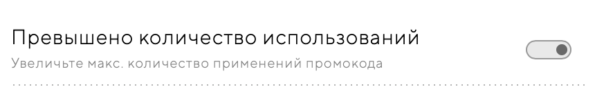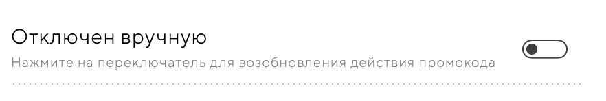 Если вы задали условие «максимальное количество применений», то промокод автоматически деактивируется, когда количество использований достигнет максимального числа. Чтобы продлить действие промокода — удалите ограничение или увеличьте его.
