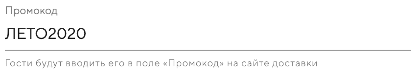 С помощью промокодов ваши гости смогут получать скидку на заказы, которые они совершают на сайте доставки.
