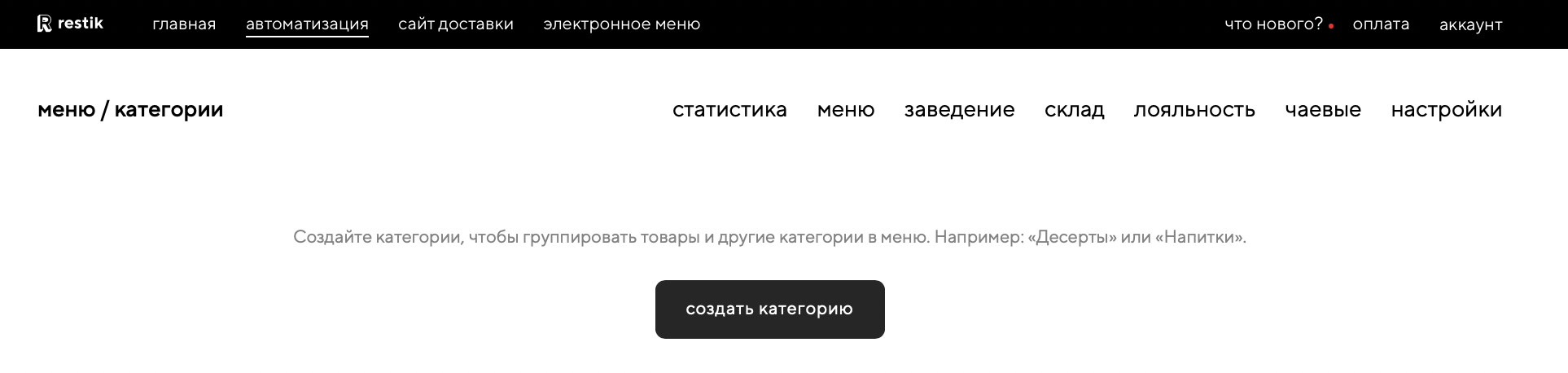 Используйте категории, чтобы группировать позиции. Если вы не планируете настраивать категории — пропустите этот шаг.