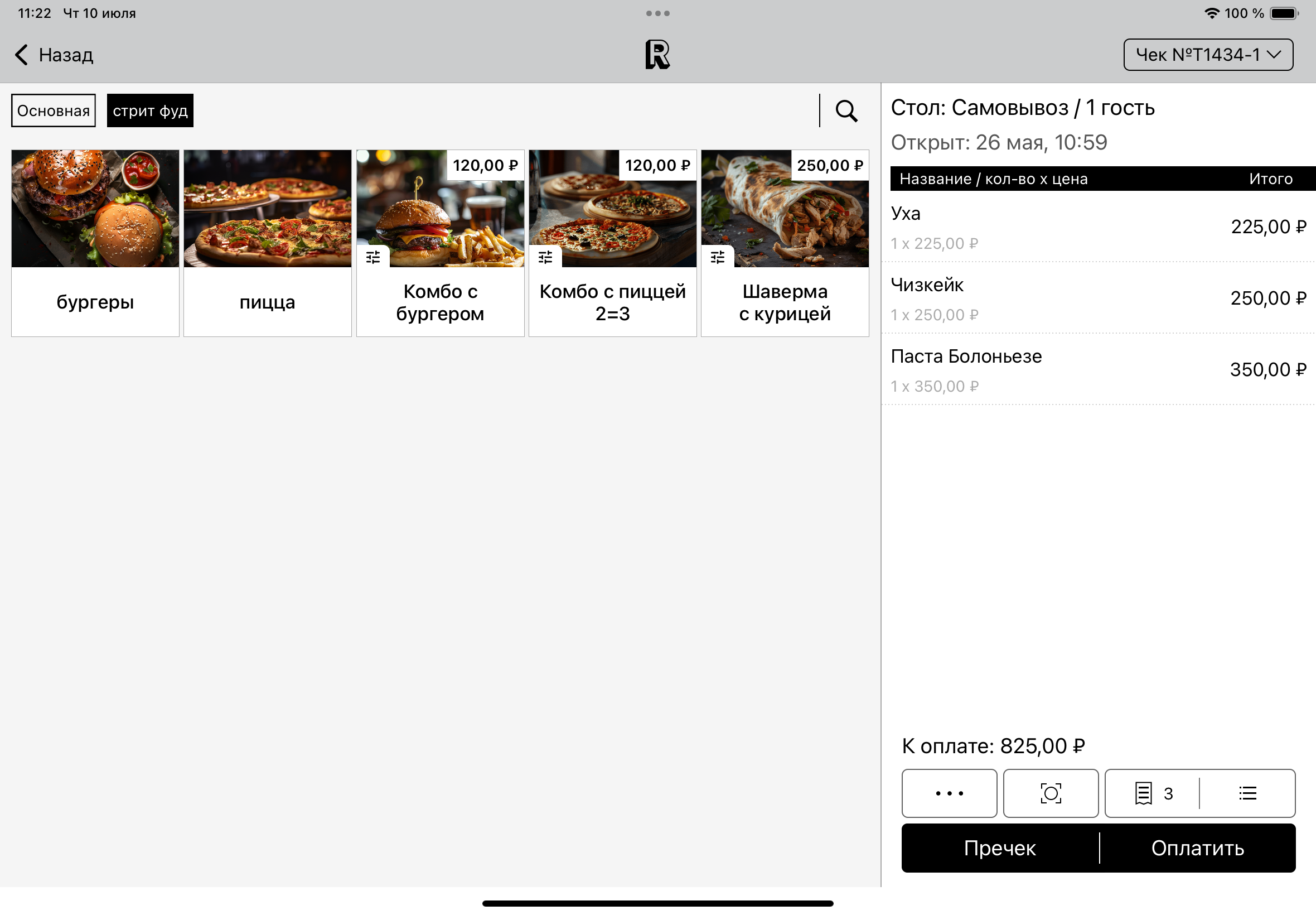 Например, внутри основной категории можно создать такие подкатегории, как «Завтраки», «Супы», «Горячее», «Барная карта», «Стритфуд». Внутри категории «Стритфуд» можно добавить вложенные категории — «Пицца», «Бургеры» и т.д., а также разместить самые популярные блюда прямо рядом с подкатегориями, чтобы ускорить работу официантов.