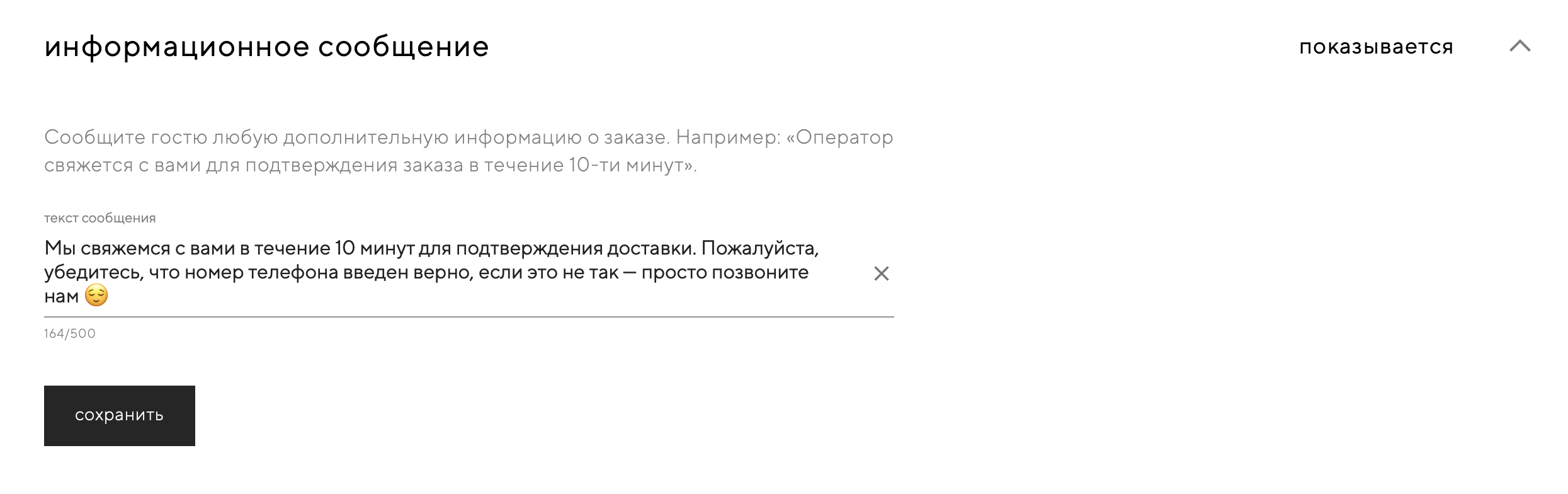 Сообщите гостю любую дополнительную информацию о заказе. Например, можно написать о среднем времени доставки или сообщить о том, что вы скоро перезвоните для подтверждения заказа — так гостю будет спокойнее.