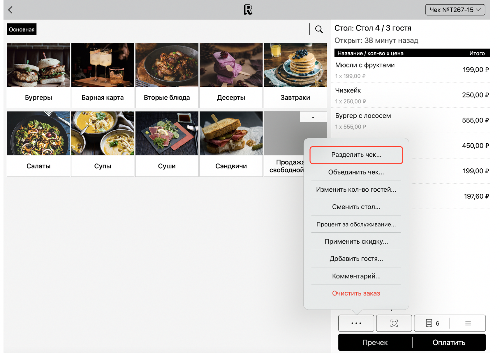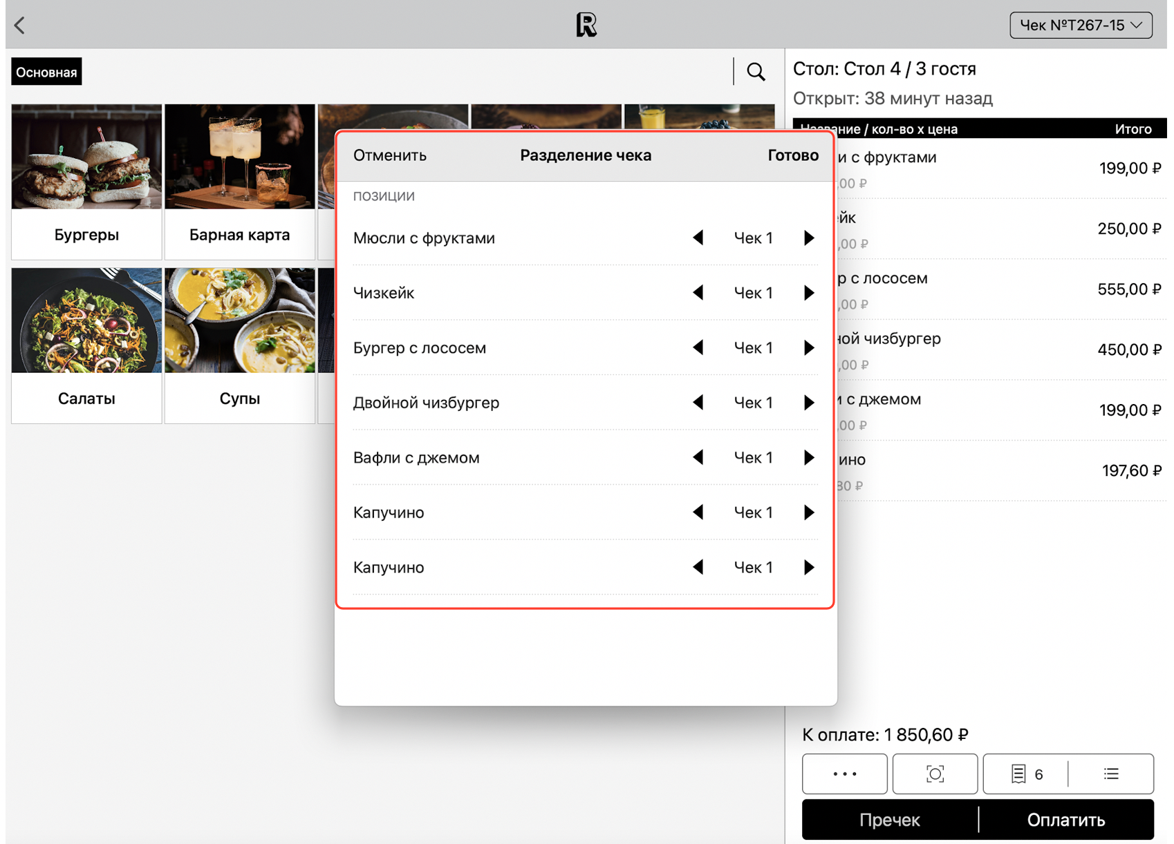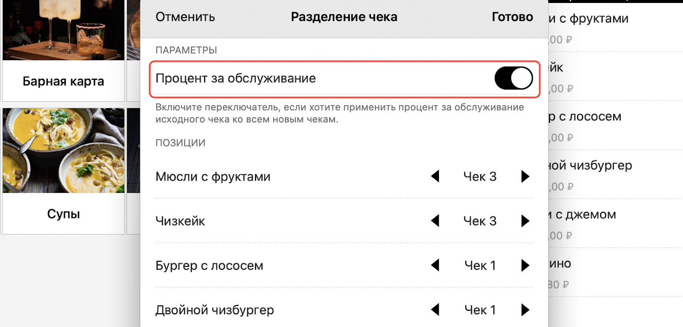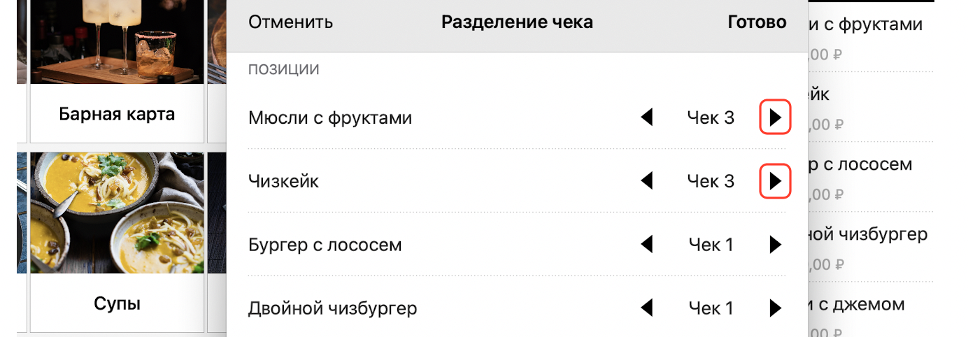 Разделение чека