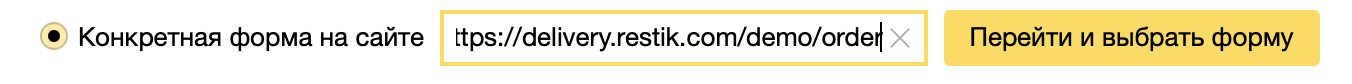 Выберите «Конкретная форма на сайте». Укажите ссылку на страницу корзины вашего сайта и нажмите кнопку «Перейти и выбрать форму».
