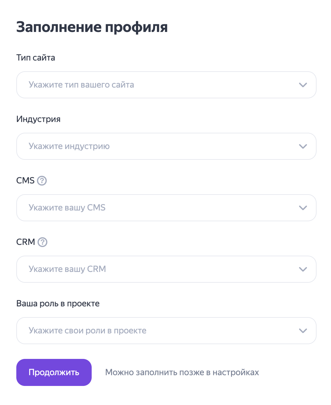 Почта для уведомлений — можно указать, если хотите получать уведомления;