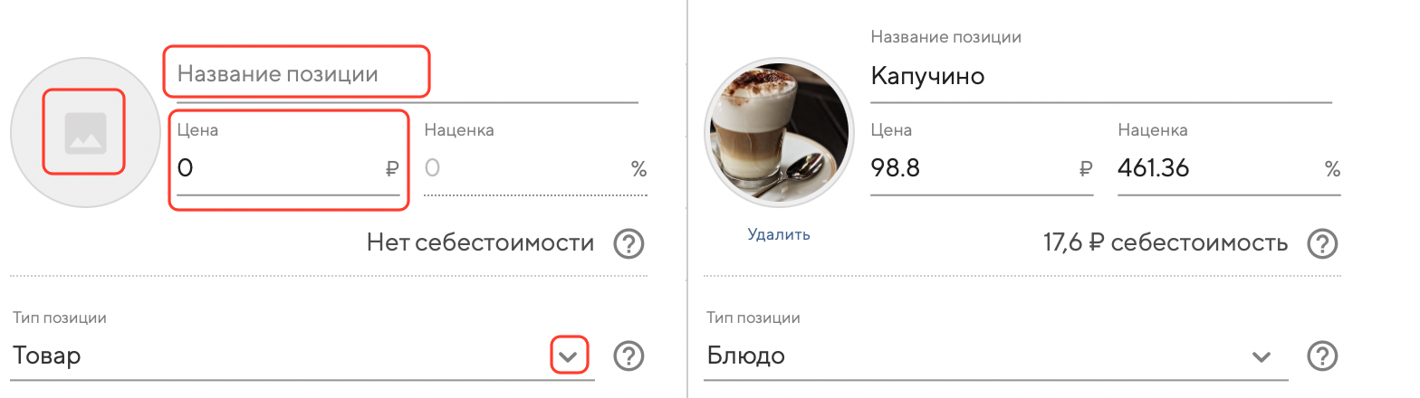 💡 Используйте уникальное название позиции. Если позиция с одинаковым названием уже существует — измените название или сделайте его более конкретным, например: «Капучино 0,3» и «Капучино 0,4».