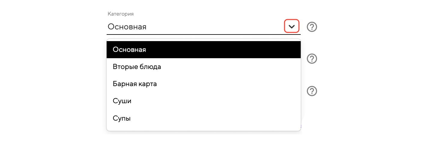 Откройте выпадающий список, чтобы выбрать категорию, к которой принадлежит позиция меню.