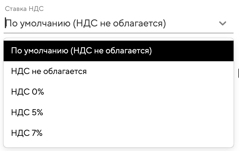 • конкретная ставка (0%, 5%, 7%, 10%, 20%, 22% или «не облагается») — будет применяться именно к этой позиции.