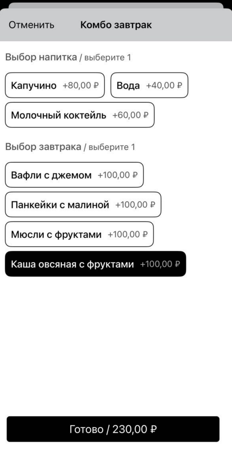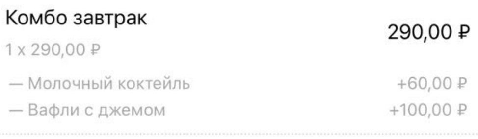 Модификаторы удобны в случаях, когда гостю нужно дать выбор — например, выбрать напиток или блюдо.