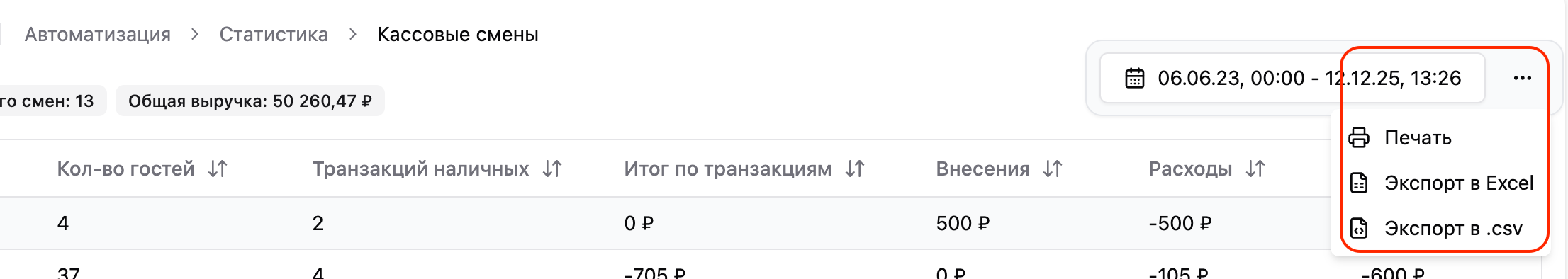 Транзакции относятся к кассовым сменам, и пока нет общего списка только транзакций. Можно смотреть информацию по каждой смене, как мы описали выше. Но если у вас задача — собрать статистику за период времени, то есть сразу по нескольким сменам, — подойдёт вариант описанный ниже.