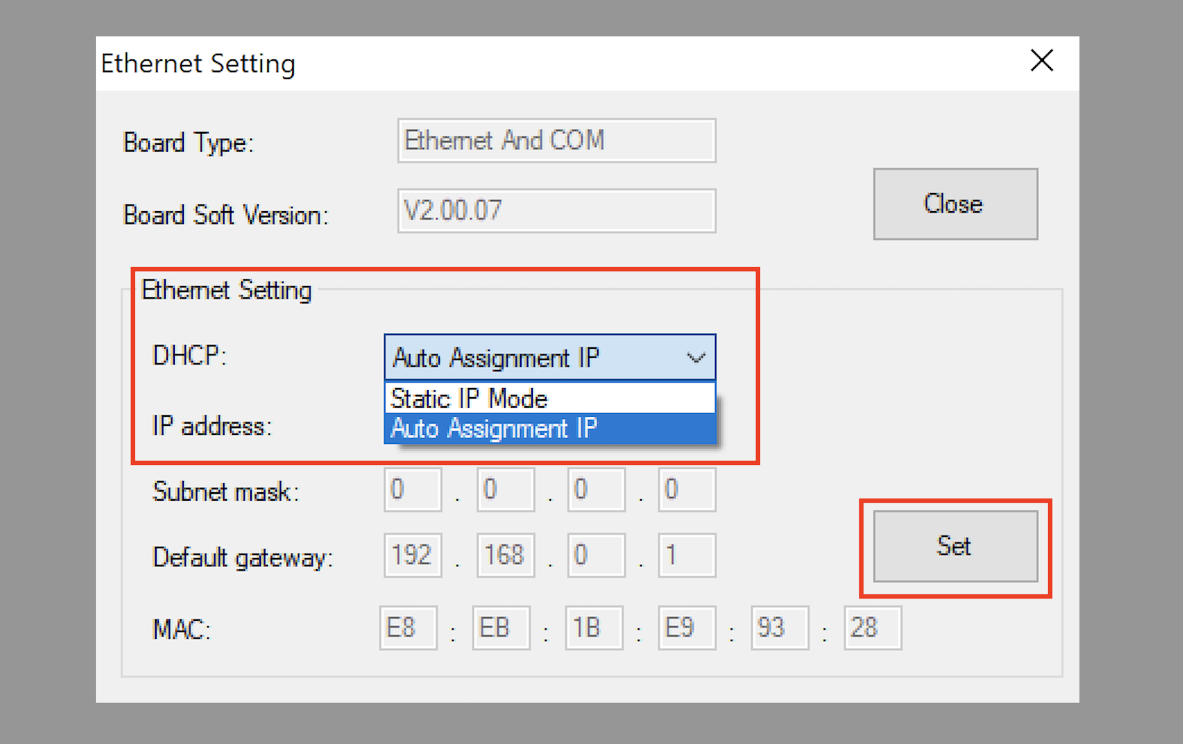 В открывшемся окне выберите «DHCP: Auto Assignment IP», затем нажмите на кнопку «Set»: