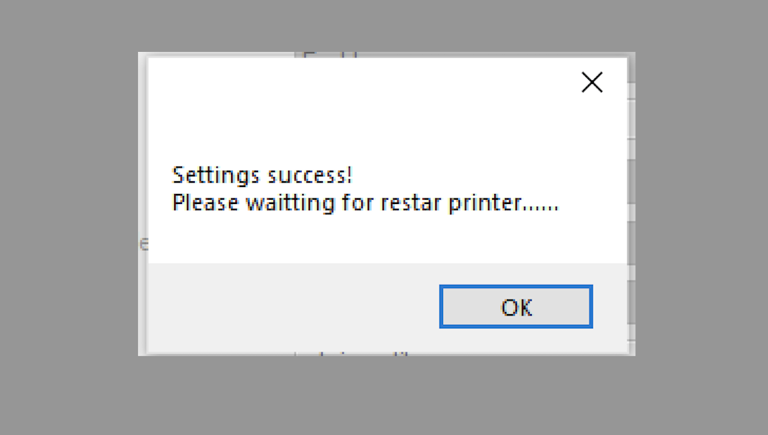 Утилита покажет сообщение «Settings success!», и принтер издаст звуковой сигнал — это значит, что установка прошла успешно.