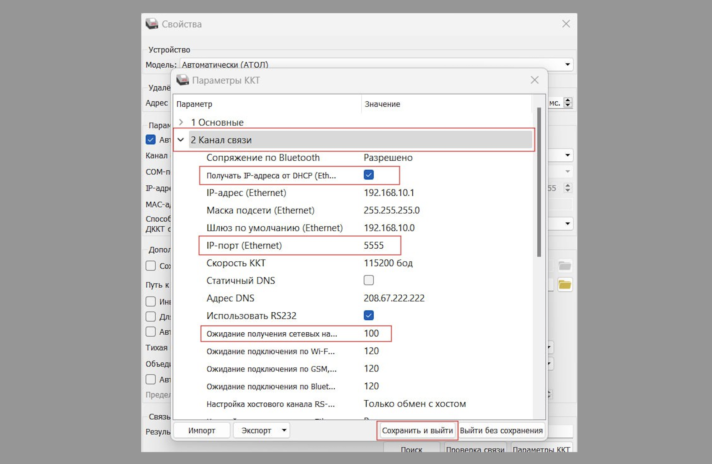 Если после этих шагов касса всё еще не распечатала IP-адрес — перейдите к следующим шагам, чтобы выполнить настройку кассы через драйвер АТОЛ. Скорее всего касса не настроена на автоматическое получение IP-адреса.