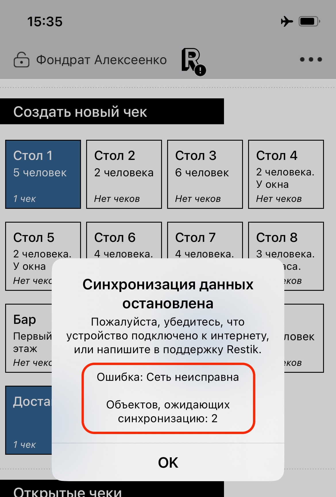 Ошибка: Error on remote server в Restik POS на iOS