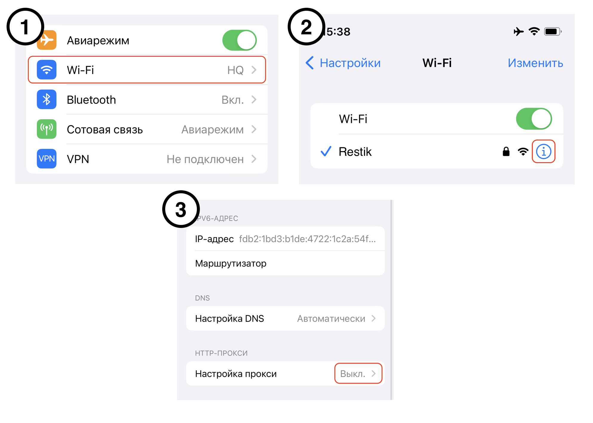 Чтобы устранить ошибку, откройте приложение «Настройки» на вашем iOS устройстве и выберите пункт «Wi-Fi», нажмите на Wi-Fi сеть, к которой вы подключены, выберите «Настройка прокси» и смените выбор на «Выкл»: