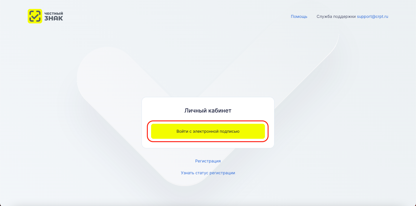 Перейдите в личный кабинет Честного Знака и авторизуйтесь.