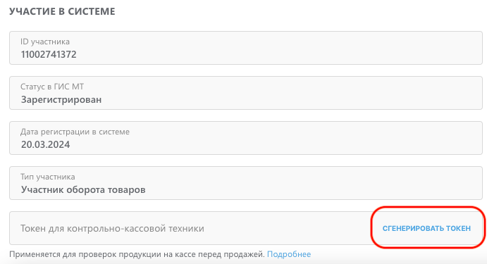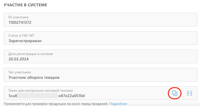 Ваш токен для контрольно-кассовой техники из ЛК Честного Знака.